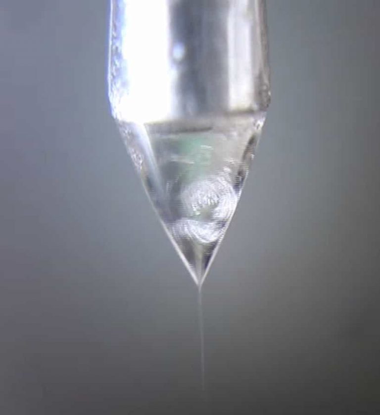 Here is a sample picture of the characteristic Taylor cone formation during electrospray ionization process. For more information, take a look at our demonstration note on electrospray ionization of sodium coupled with a gas flame for optical emission spectroscopy.